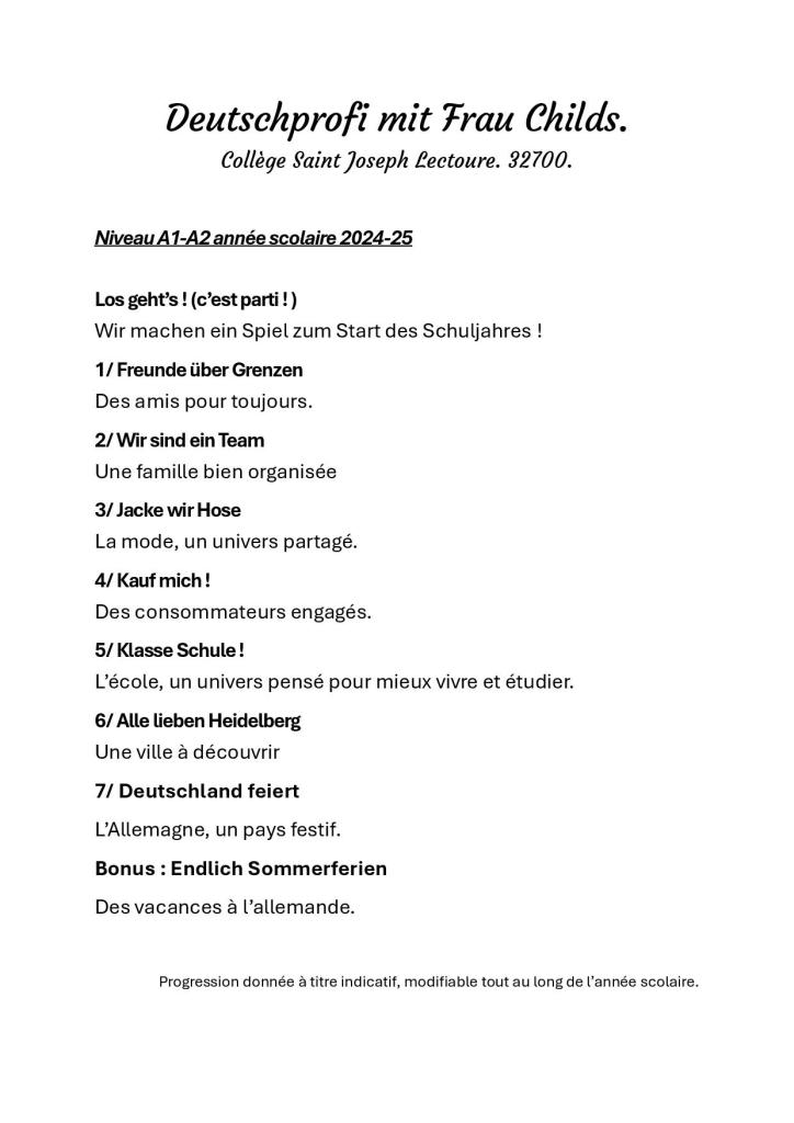 Progression* classe de 5e DEUTSCH Collège Saint Joseph Lectoure
