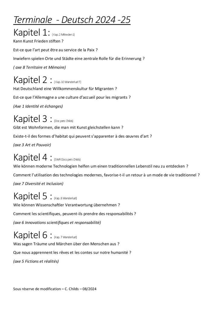 Progression pour l’apprentissage de l’allemand en classe de Terminale pour l’année scolaire 2024-25*